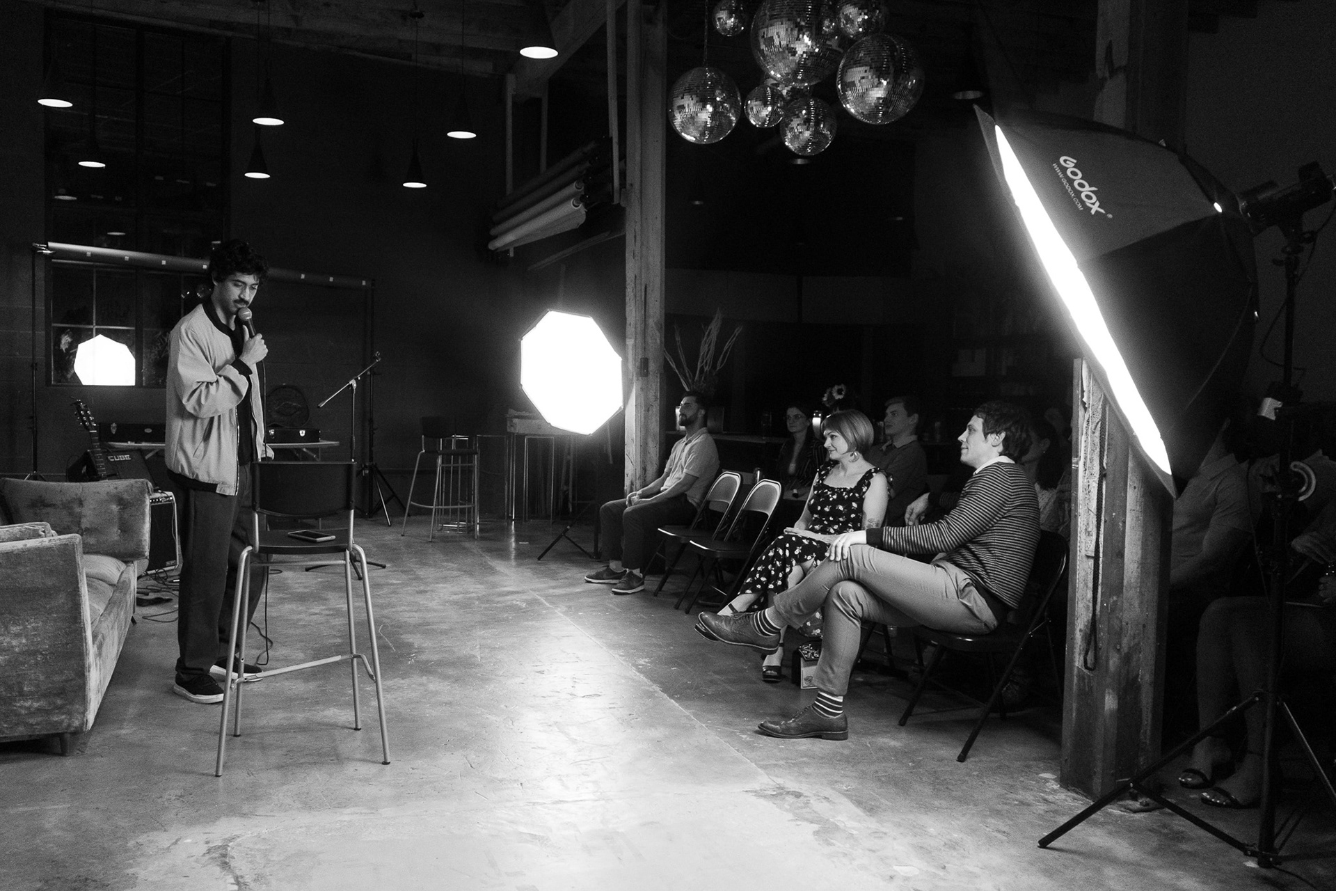 Musician Ashe B (@ashe__b on Instagram) hosts Untitled Soirees in Atlanta, GA to showcase comedians and musicians. Tickets to each event are open to the public via Eventbrite.